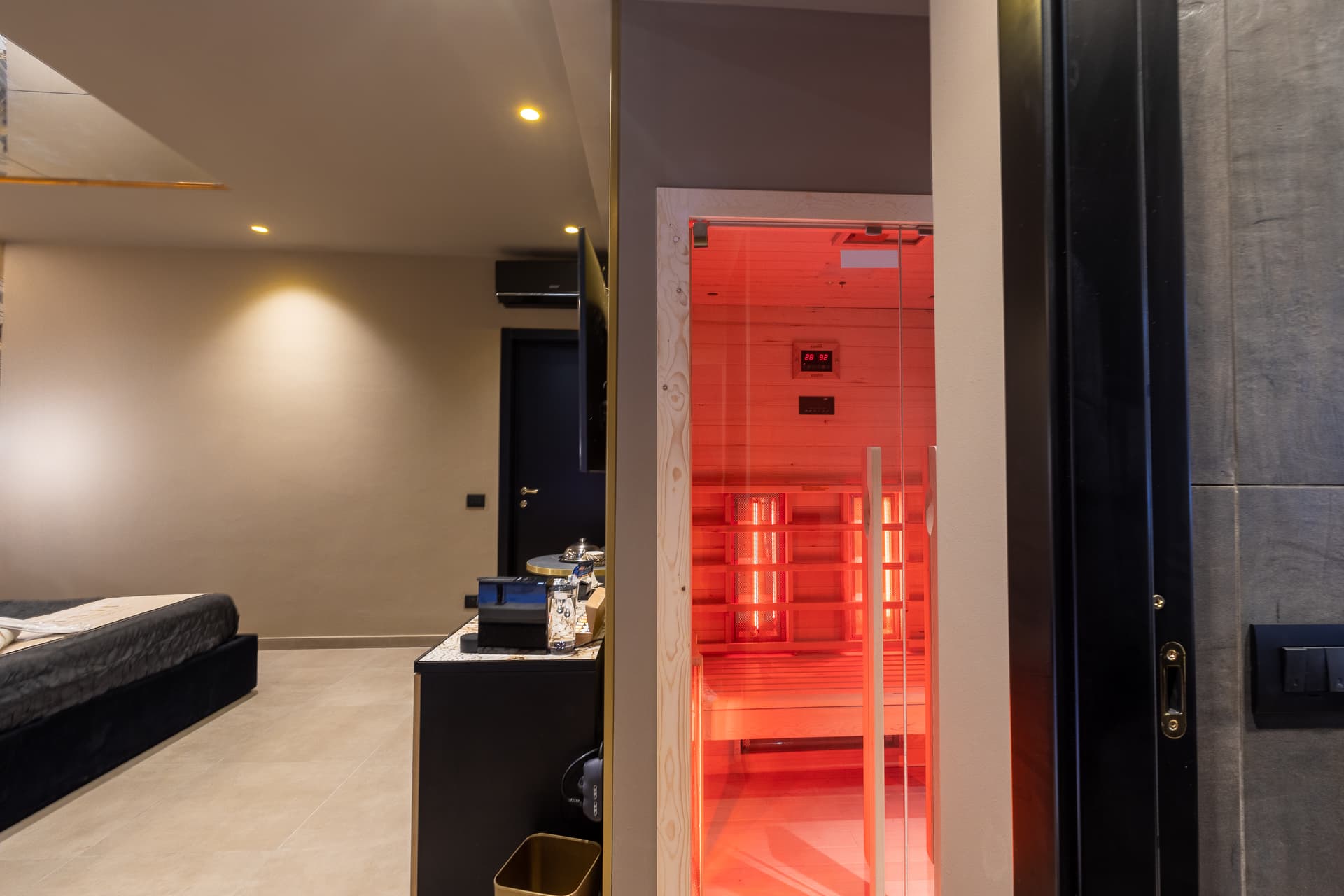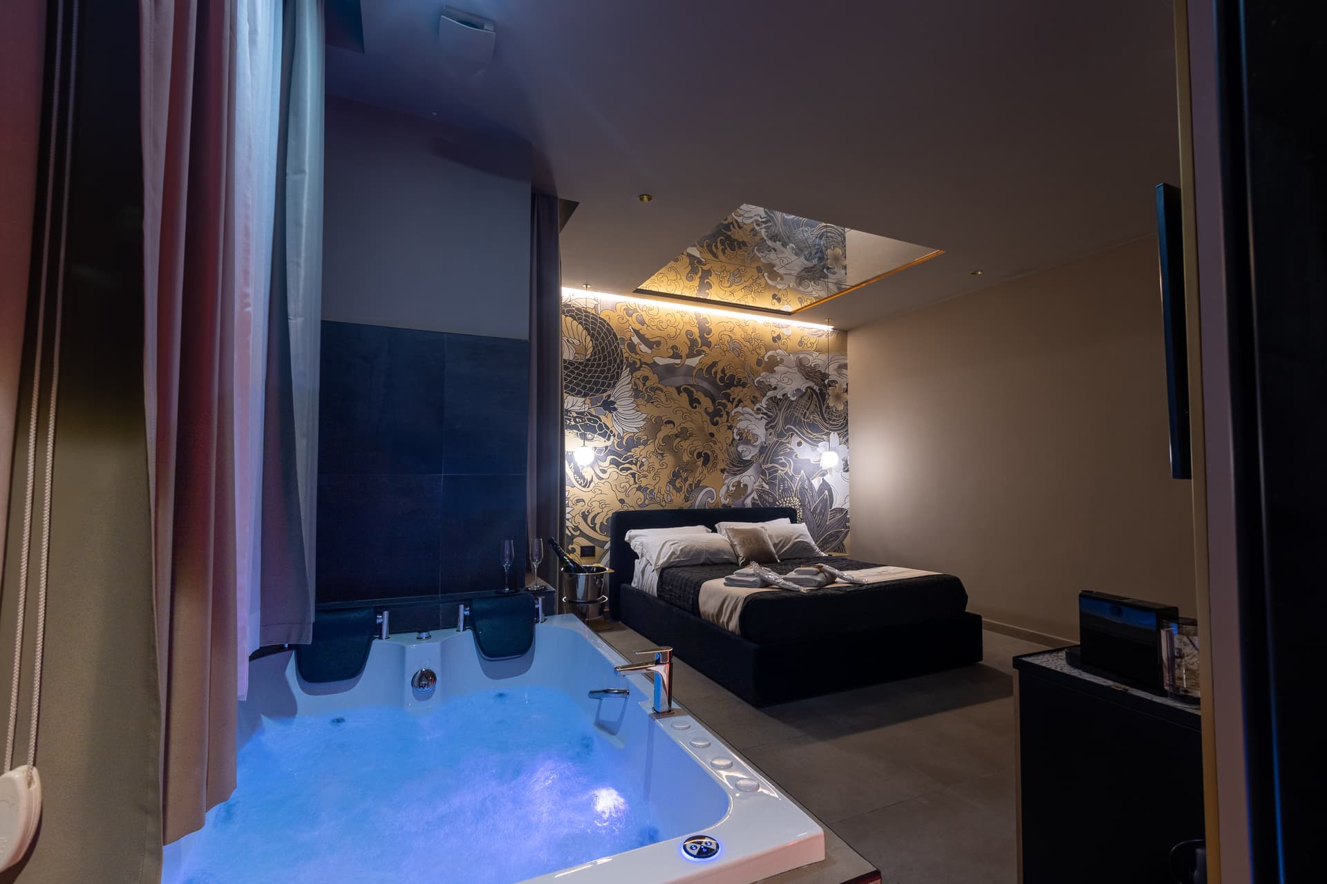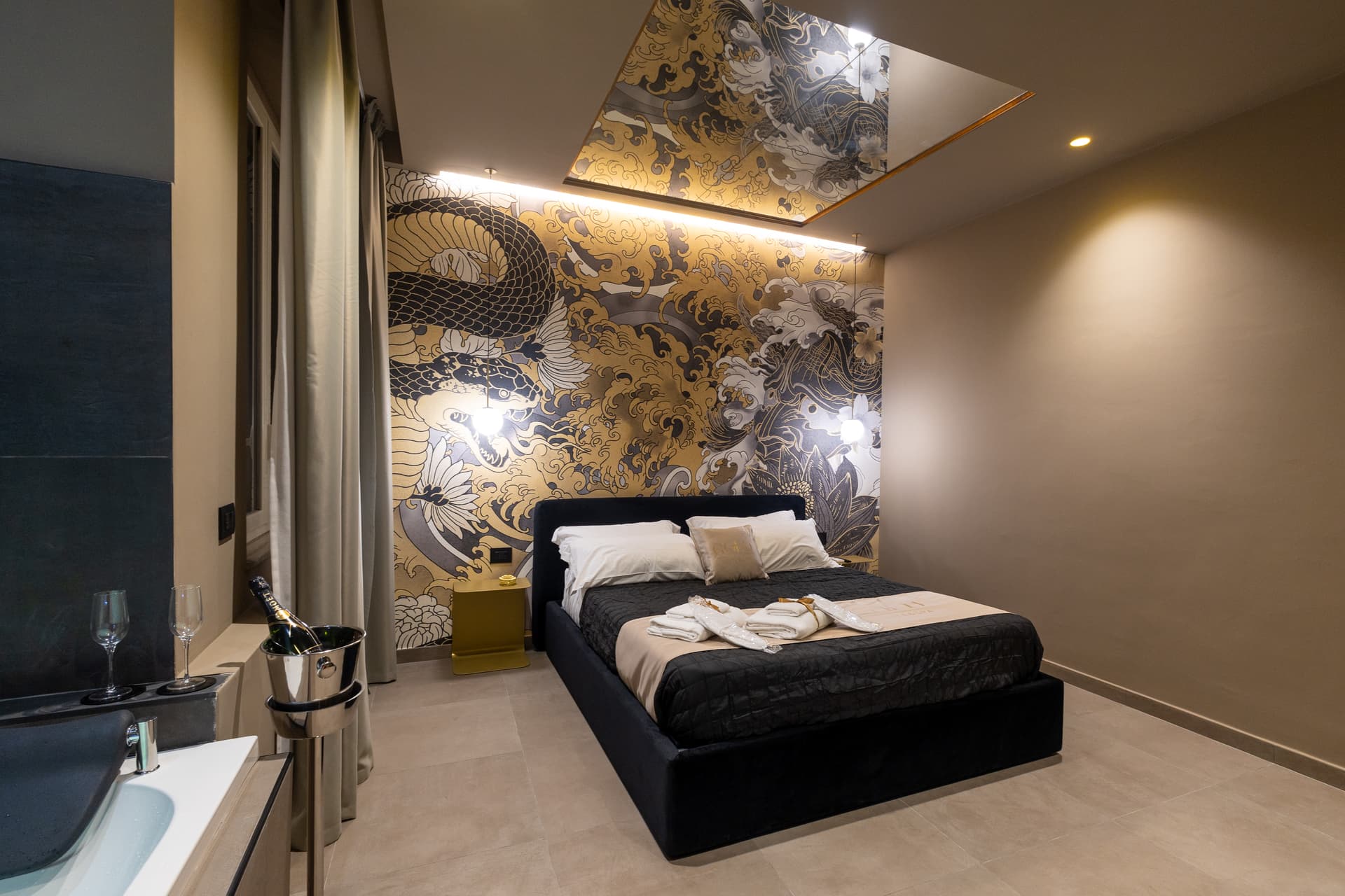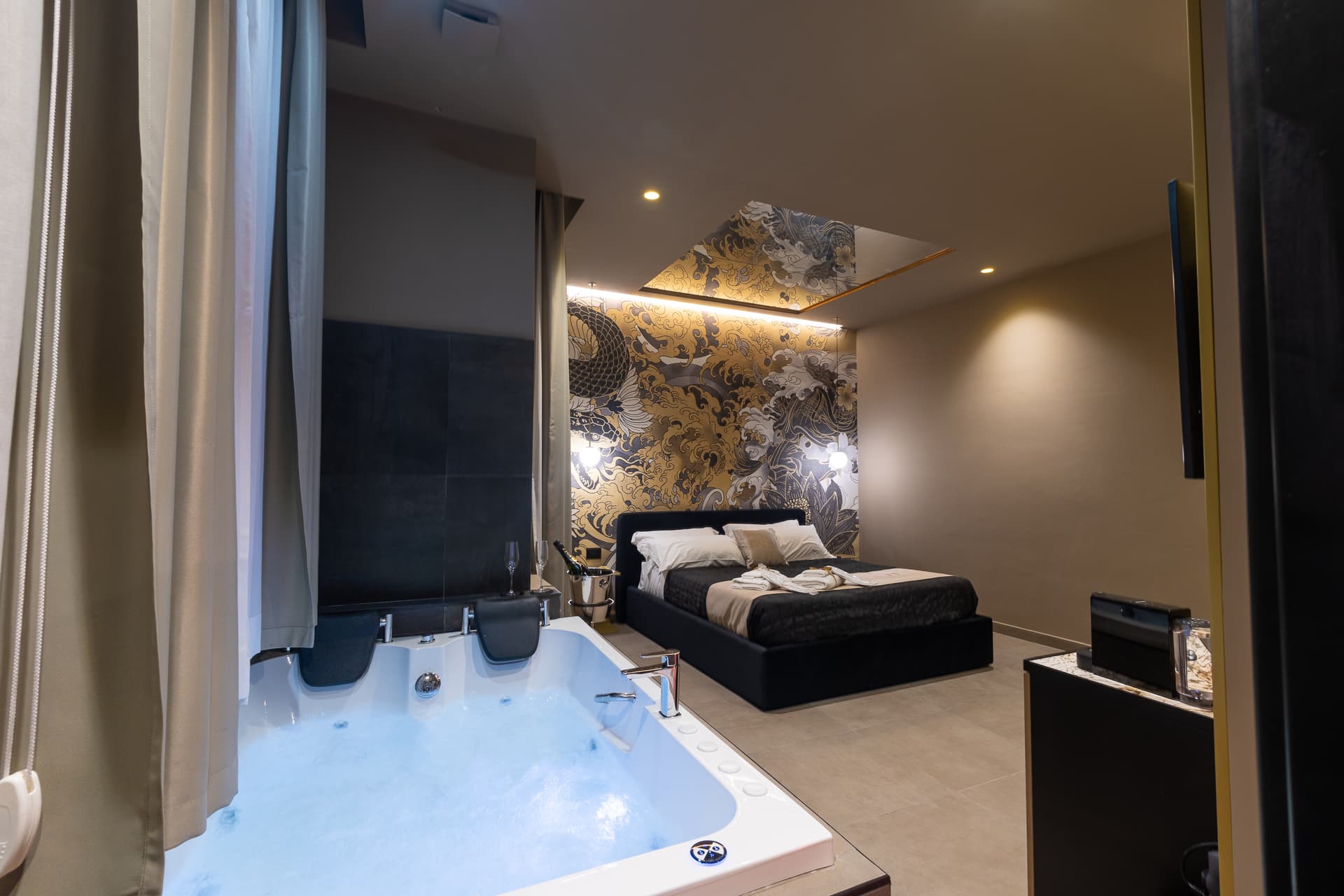 Lasciati conquistare dal fascino unico della Drago Suite, un ambiente dal design raffinato e dettagli che evocano forza ed eleganza. Perfetta per un soggiorno esclusivo, offre vasca idromassaggio, doccia emozionale e sauna per un’esperienza di puro relax.