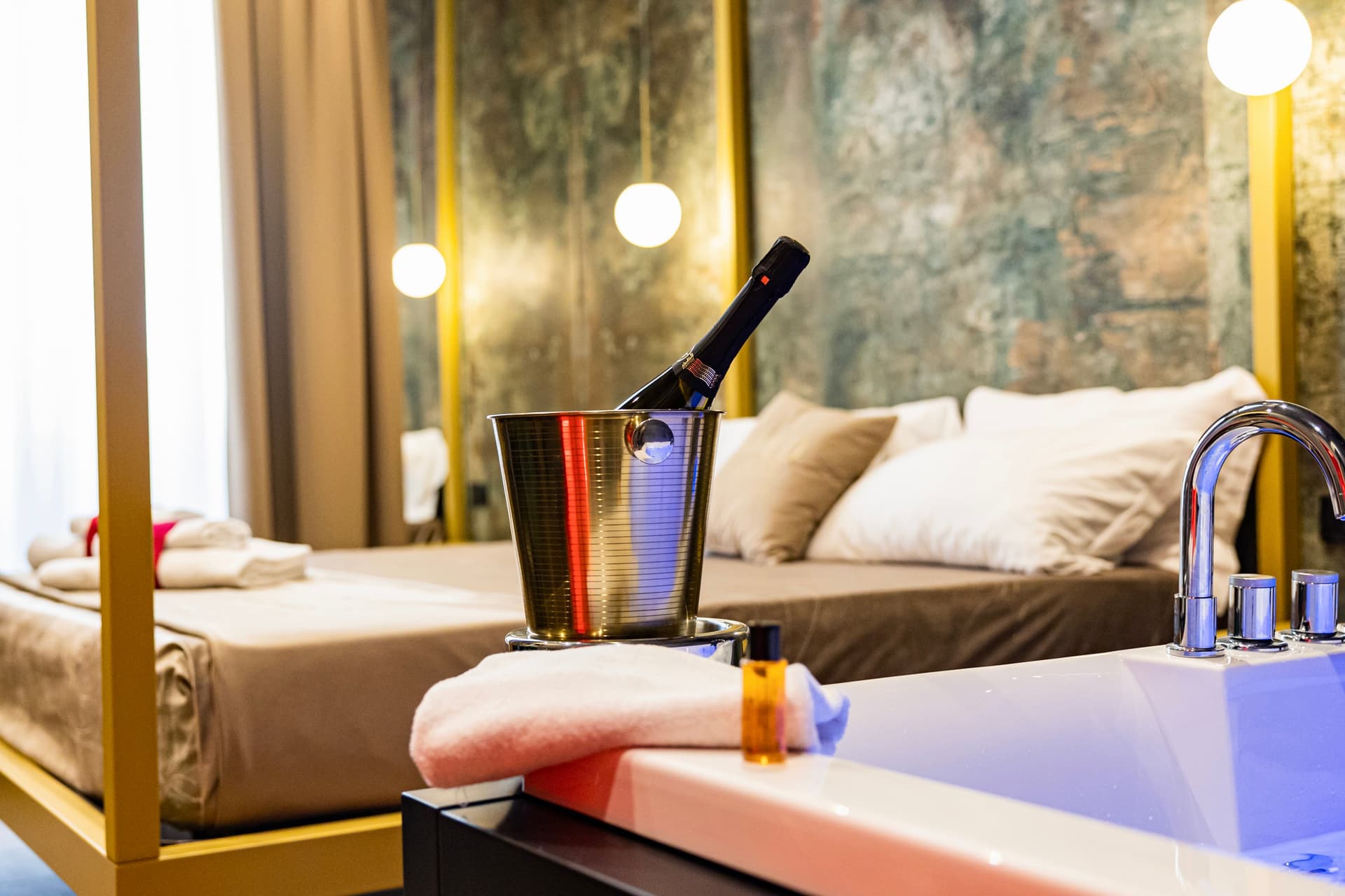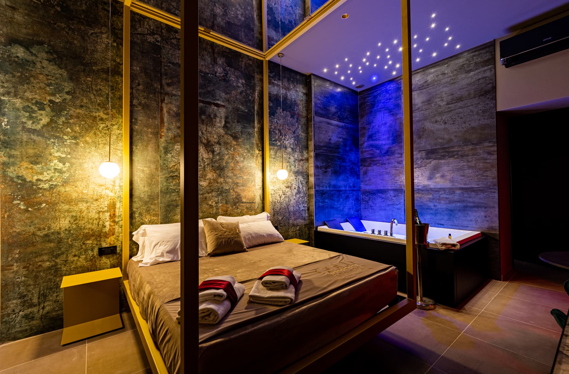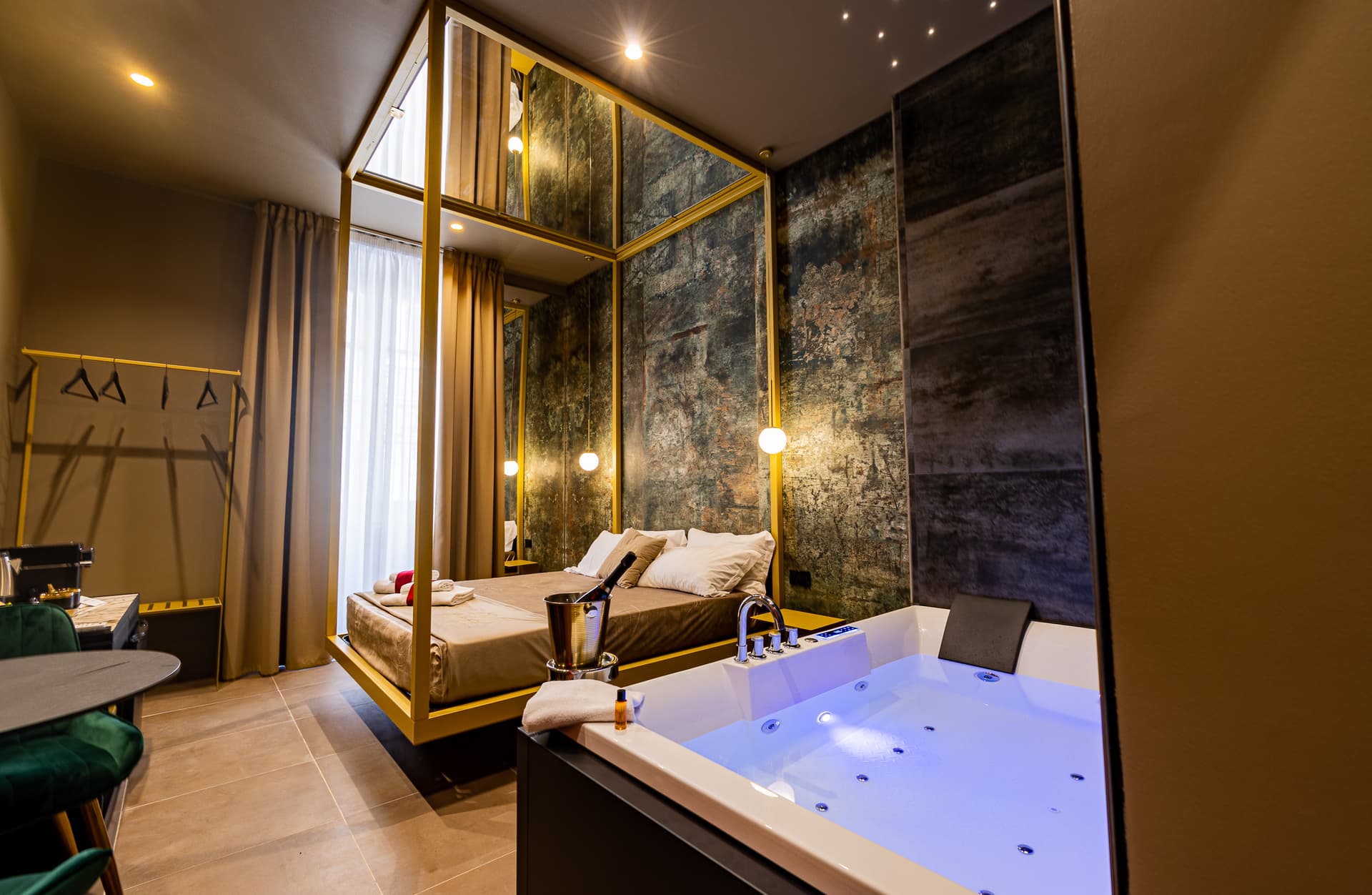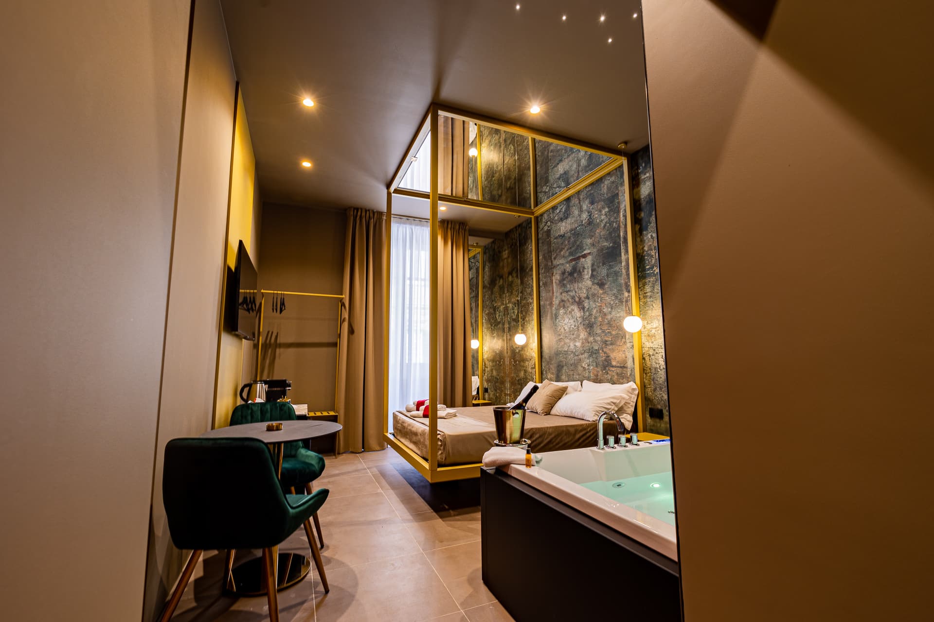 Un’atmosfera rilassante e naturale caratterizza la Green Suite, pensata per chi desidera ritrovare armonia e benessere. Dotata di vasca idromassaggio, sauna e cromoterapia, questa suite offre un’esperienza rigenerante.